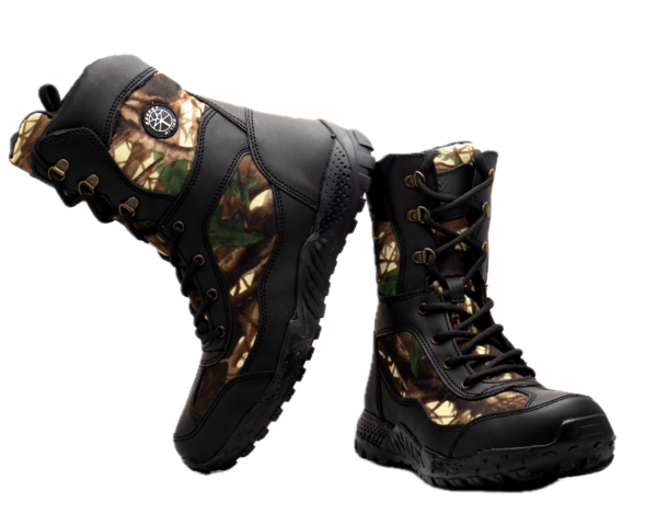 Su suela de alta tracción proporciona seguridad en los terrenos más difíciles, mientras que la plantilla acolchada asegura la comodidad necesaria para largas jornadas. Disponible en versiones arena camuflaje y negro camuflaje, es perfecta tanto para actividades tácticas como para aventuras al aire libre.